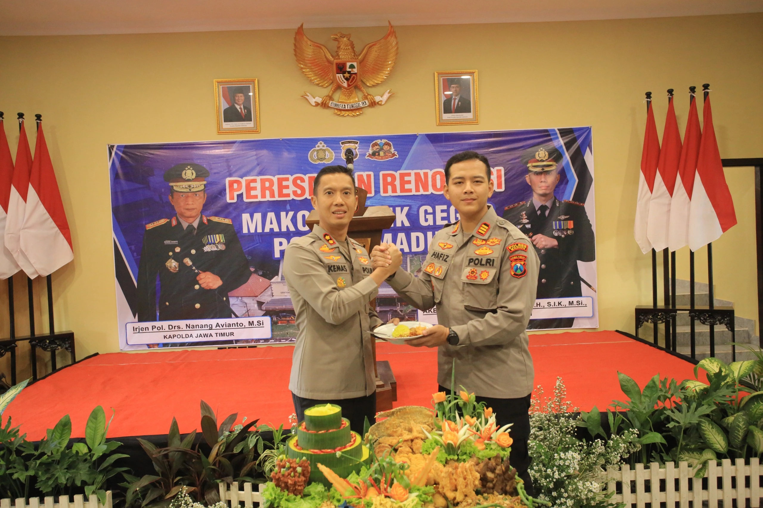 Madiun – Kapolres Madiun AKBP Kemas Indra Natanegara, S.H., S.I.K., M.Si., meresmikan renovasi Markas Komando (Mako) Polsek Geger yang berlokasi di Kecamatan Geger, Kabupaten Madiun, Kamis (8/1/2026). Kegiatan peresmian tersebut berlangsung di Mapolsek Geger dan dihadiri oleh Ketua Bhayangkari Cabang Madiun Ny. Nossy Kemas, Waka Polres Madiun, pejabat utama Polres Madiun, Kapolsek jajaran, unsur Muspika Kecamatan Geger, tokoh agama, tokoh masyarakat, serta personel Polres Madiun dan Polsek Geger.