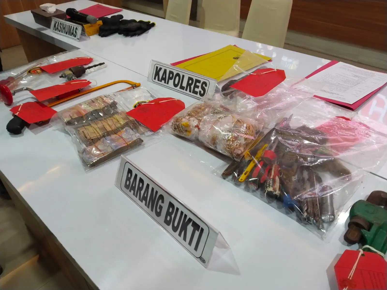 “Pelaku menyasar rumah dan toko dengan kondisi sepi. Setelah membobol tembok, pelaku masuk dan mengambil barang berharga milik korban,” jelas AKBP Kemas Indra Natanegara.
